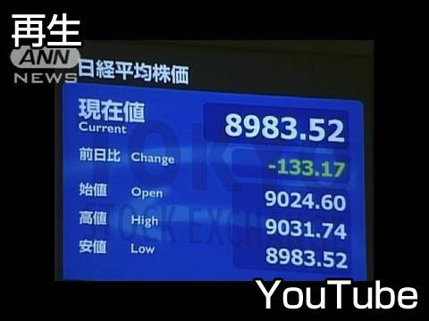 日経平均株価が一時9000円割れ 1年3カ月ぶり(10/08/24)